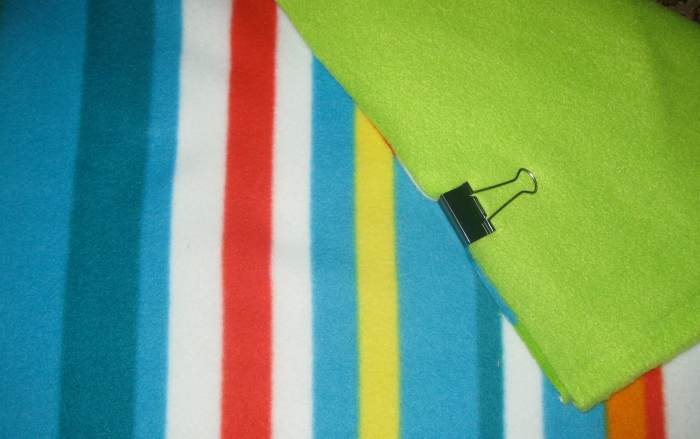 At home, lay the fleece pieces down evenly on top of each other, and clip them together so they don't move.
